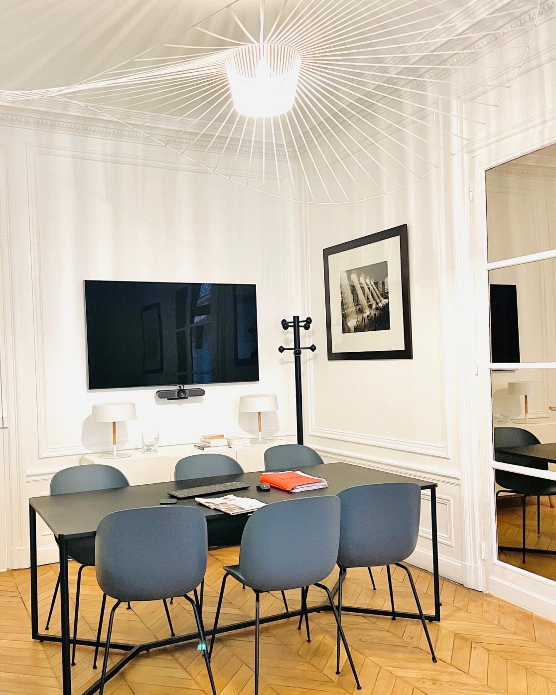 La salle de réunion a été repensée pour accueillir le mobilier choisi quelques années auparavant de la façon la plus optimisée qui soit.