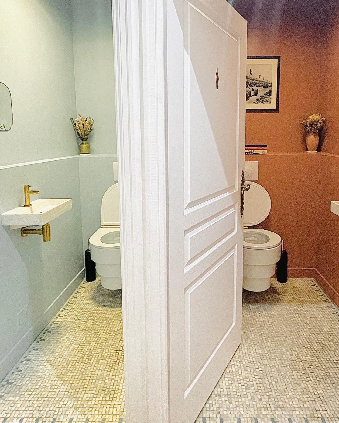 Les toilettes hommes/femmes ont été entièrement repensés comme des espaces d'accueil esthétiques en cohérence avec l'haussmannien et à l'image du reste des lieux.