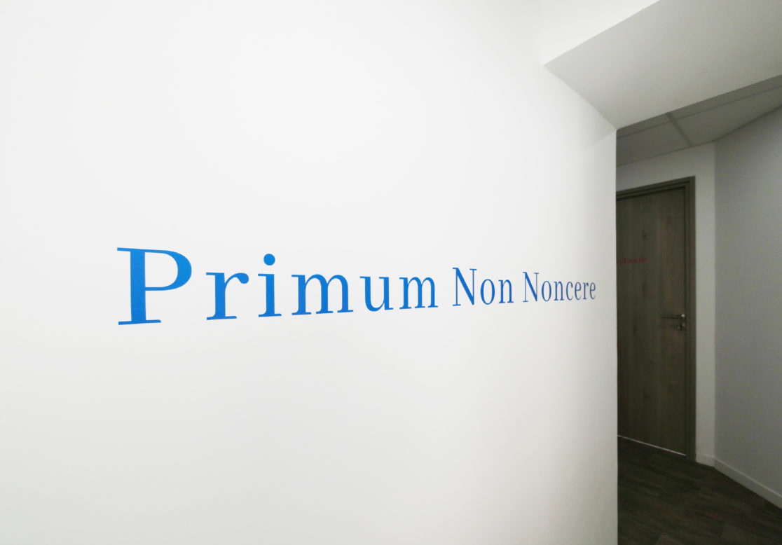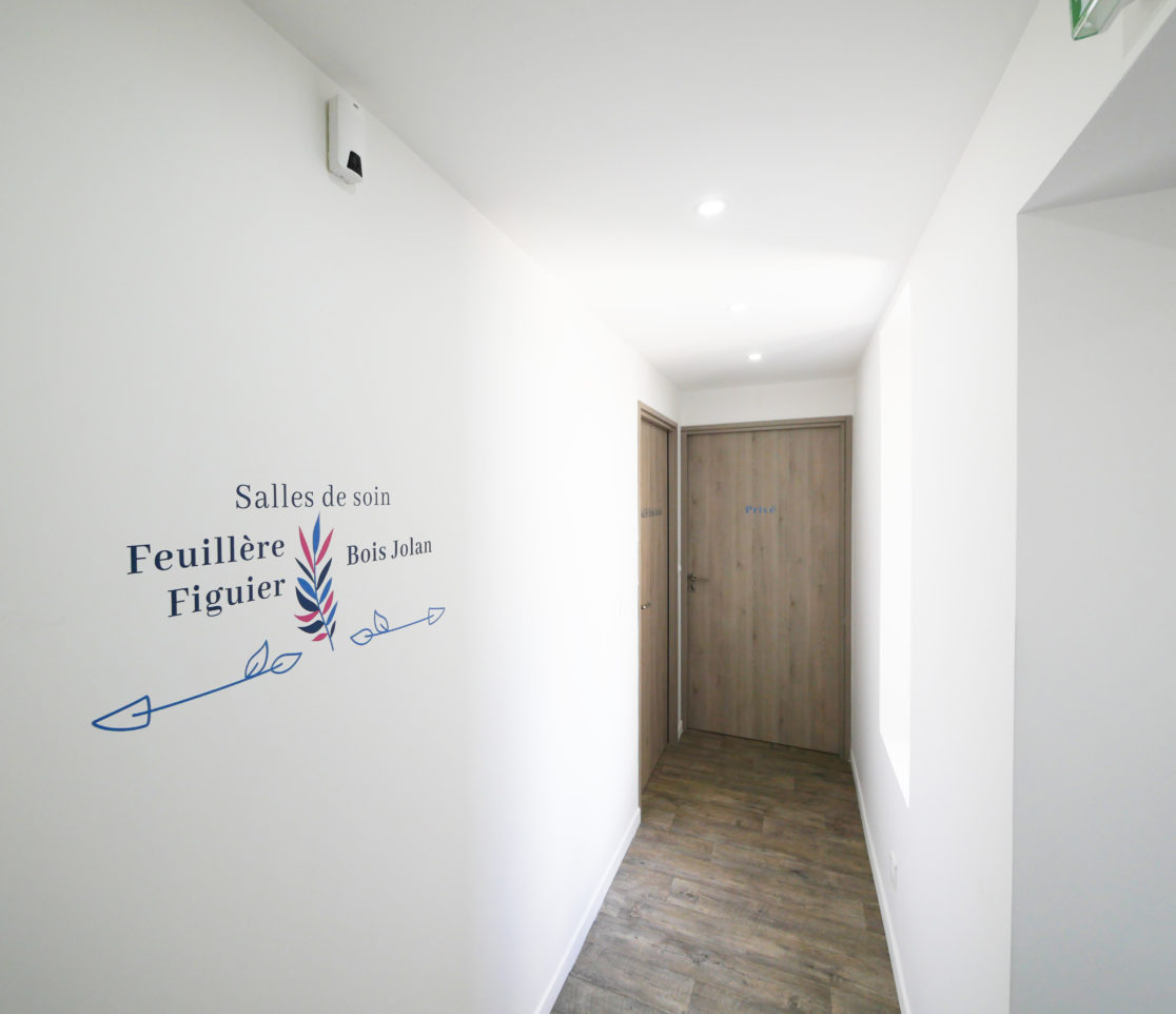 Le logo a été pensé pour représenter harmonieusement l'activité et son environnement. Il apparaît dès l'entrée et sur les fenêtres des espaces vitrés qui nécessitaient plus de confidentialité. L'installation d'un logo va permettre au praticien de gagner en visibilité dans un contexte d'installation, d'association ou de cession.