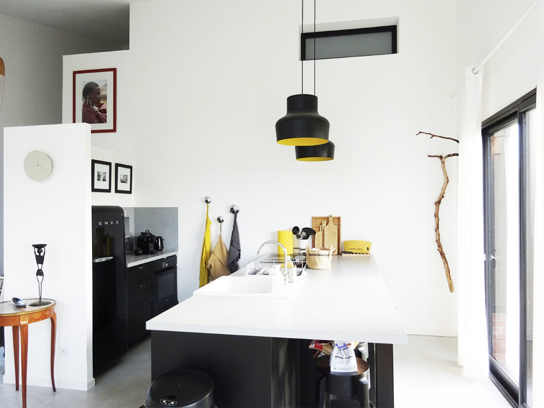 Conception d'une cuisine ouverte fonctionnelle et conviviale.