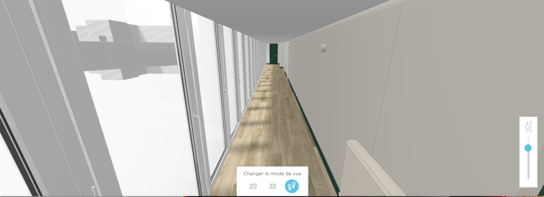 Tout comme dans le hall, le plafond en dalles sera remplacé sur les paliers et peint dans une teinte plus moderne de beige tout comme les murs. L’ensemble de l’installation électrique a été repensé pour se fondre dans le décor. Au sol, plusieurs solutions ont été apportées, un carrelage effet pierre dans des finitions diverses ou un sol PVC adapté à l’usage collectif. Plusieurs jeux de couleurs ont été proposés pour les encadrements de portes et la porte d’ascenseur.